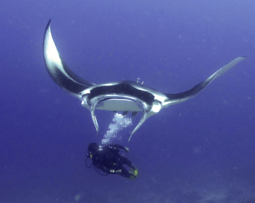 I have so many wonderful memories of diving with these majestic creatures. Giant manta rays are the world’s largest rays with a wingspan of up to 26 feet or 8 metres. They are filter feeders and eat large quantities of zooplankton. Giant manta rays are slow-growing, migratory animals with small, highly fragmented populations that are sparsely distributed worldwide.