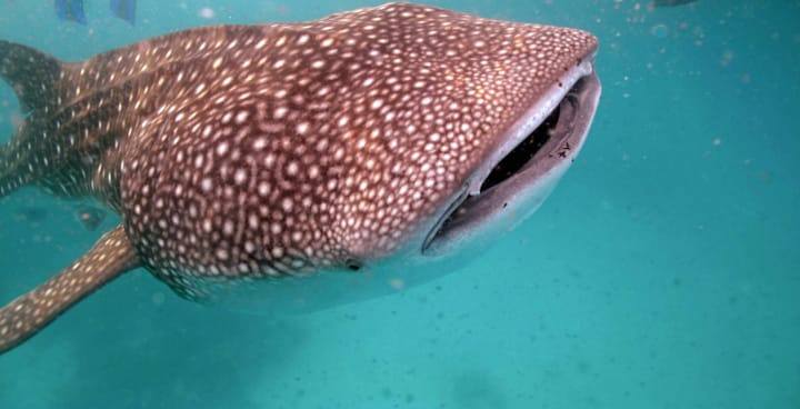 The largest fish in the sea, they can reach lengths of forty feet (12-15 metres). The largest ever recorded was around 20 metres, which would equate to around 20 tonnes. The skin on their backs can be 25 centimetres thick. This also helps them heal from serious wounds caused by boat propeller injuries.