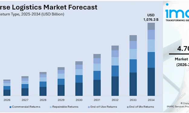 The global reverse logistics market size reached USD 711.1 Billion in 2025. Looking forward, IMARC Group expects the market to reach USD 1,076.3 Billion by 2034, exhibiting a growth rate (CAGR) of 4.70% during 2026-2034. Environmental concerns and regulations, the rise of e-commerce and online returns, the emphasis on sustainability, technological advancements, such as blockchain and the Internet of Things (IoT), the adoption of circular economy principles, and increasing consumer expectations for hassle-free returns are some of the factors supporting the market growth.