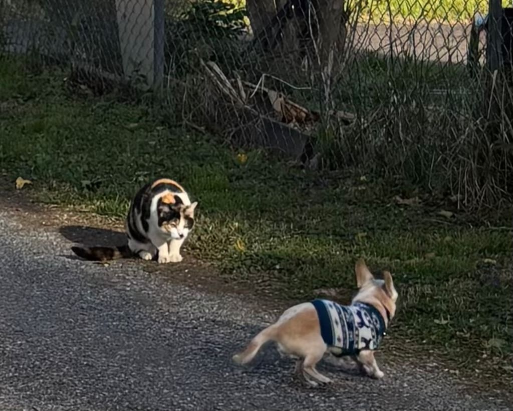 A barking dog did not deter this feline.