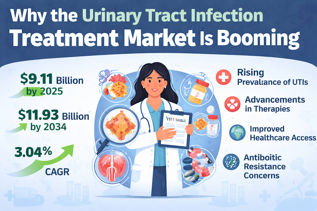 The Urinary Tract Infection Treatment Market may not always attract flashy attention, but it is becoming one of the more meaningful healthcare segments to watch. A growing patient base, rising awareness, evolving therapies, and increasing concern around antibiotic resistance are all reshaping the industry. With Renub Research projecting the market to grow from US$ 9.11 billion in 2025 to US$ 11.93 billion by 2034, the sector is clearly moving from routine treatment territory into a more strategic, innovation-driven healthcare category.